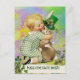 BABY HUGGING RABBIT St. Patrick's Day Kleeblatts Postkarte