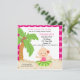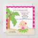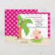 Luau! Da ist ein kleines Mädchen unterwegs! Beginnen Sie Ihr Fest / Luau mit dieser bezaubernden Babydusche. Das Motto Hawaiian/Luau ist großartig. Es hat ein helles Rosa mit hellerem rosa, großen Polka-Punkt-Hintergrund um die Einladung herum. Es gibt ein weißes viereckiges Zentrum. Innen ist, wo Sie personalisieren mit Ihrem Party Informationen. Die links Seite hat eine große Palme. Der Sand ist ganz unten, und ein hübsches Hula-Baby sitzt im Sand. Sie trägt einen limiengrünen gestreiften Rock und ein rosa Oberteil. Da ist eine Hibiskus-Blume im Haar. Karo die anderen Designs und Produkte, die wir anbieten. ©JW Illustrationen