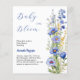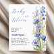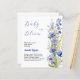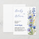 Ein schick weißer Hintergrund. Dekoriert mit blauen Wildblumen. Personalisieren und fügen Sie den Namen der Mutter zu sein und Party-Details. Text: Baby in Blüte. 1 Blatt = 1 Einladung mit Druckkante bis Kante.