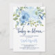 Baby in Bloom blauen Aquarell Blütendusche Einladung für Baby