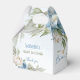 Elegantes Floral Baby in Bloom Small Gable Fevor Boxen für eine Babydusche mit Baby blauen Blume und Grünpflanzen. Sie können aus 3 Größen dieser Gable-Gefälligkeitsboxen wählen. Personalisieren Sie den gesamten Text einfach, und wenn Sie die Krone nicht gewollt haben, verließ Sie ihn einfach leer im Textfeld, es ist nur ein Text - Kate Eden Art