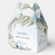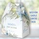 Elegantes Floral Baby in Bloom Medium Gable Gefallen Box für eine Babydusche mit Baby blauen Blume und Grünpflanzen. Sie können aus 3 Größen dieser Gable-Gefälligkeitsboxen wählen. Personalisieren Sie den gesamten Text einfach, und wenn Sie die Krone nicht gewollt haben, verließ Sie ihn einfach leer im Textfeld, es ist nur ein Text - Kate Eden Art
