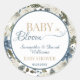 Baby in Bloom Blue Floral Botanical Baby Shower Runder Aufkleber