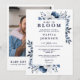 Baby in Bloom Blue Floral Foto QR Babydusche Einladung