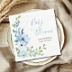 Baby in Bloom blauen Blumenservietten. Einfach den Text ändern. Hübsche Aquarellblüte für Kinderdusche.