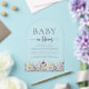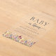 Ein wunderschöner, floraler Rahmen von Wildblumen in Aquarelltönen schmückt den unteren Rand dieser angesagten Babydusche. Die Wörter "Baby in Blüte" erscheinen in Serif- und Script-Schriftart, mit Swashes vor und nach dem Skript. Personalisieren Sie den Text mit dem Namen der Mama-to-be und die Duschdetails in Holzkohle grau auf einem klaren bogenförmigen Hintergrund.