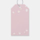 Ein niedliches, süßes und stilvolles Geschenketikett für ein Party mit Babydusche und einem "Baby in Blüte" Thema. Die Rosa-Hintergrundfarbe im Frühling wird mit einem süßen Blumenmuster aus weißen und gelben Gänsehalben strukturiert und überlagert. Der Rücken ist mit der einfachen, rosa Frühlingsfarbe und den Gänseblüten geschichtet.