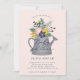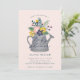 Diese Einladung beinhaltet eine Tasse blühender Blume, die sich perfekt für eine Babydusche eignet.