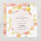 Eine charmante Babydusche mit sanften Aquarellfarben-Blume in pfirsich und gelb, umgeben von einer eleganten, runden Textgestaltung. Ideal, um eine neue Ankunft mit einer delikaten und botanischen Touch zu feiern.