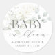 Mit unserem rustikalen Rundaufkleber "BABY IN BLOOM" können Sie Ihr Babyduschthema in Ihre Gunst-Aufkleber oder Umschlag Aufkleber einbinden.