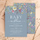 Baby in Bloom Wildblume Dusty Blue Baby Dusche Einladung