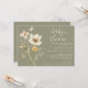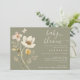 Eine hübsche, geschlechtsneutrale Babydusche mit zahlreichen Aquarellfarben-Wildblumen. Das boho-Aussehen ist mit einer dunkelgrünen Karte mit Baby In Bloom in einem handgeschriebenen Skript ausgestattet. Personalisieren Sie die wichtigsten Angaben wie Name, Datum und Uhrzeit der Veranstaltung, Ort, UAWG und Registrierungsinformationen.