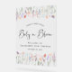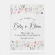 Elegantes, geschlechtsneutrales Babyduschzeichen mit Aquarellfarben von zarten Wildblumen und "Baby in Bloom" in einem stilvollen zeitgenössischen Drehbuch. Personalisieren Sie sich mit dem Namen der Mami-zu-sein und Dusche Datum in einfacher Typografie.