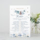 Add some laughter to your celebration with this “Would She Rather” baby shower game card. Inspired by a dreamy meadow of blue wildflowers and sweet baby clothes on a clothesline, the soft watercolor design turns a simple party game into a charming detail of your Baby in Bloom celebration.