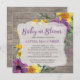 Rustikales, ländlich inspiriert Baby in Bloom Baby Dusche Einladung beginnt mit einer Not leidenden Holzstruktur. Gelbe und lila Gänse mit kleinen Butterschalen schmücken ihn an zwei Ecken. Ein hübsches, durchsichtiges weißes Overlay ermöglicht es der Textur, sich durch die Textur zu zeigen, während der Text leicht lesbar ist. Baby in Bloom ist in trendiger Skriptkalligraphie geschrieben. Der Name der künftigen Mutter wird in einem Serif-Schriftart mit geöffnetem Skript geschrieben. Benötigen Sie passende Artikel, schreiben Sie mir für Hilfe. Ich bin Nelda und ich hätte Liebe zu helfen!