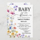 Personalisiertes Watercolor Baby in blühenden Wildblumen Gender-neutral Einladungskarte - digitale Einladung oder gedruckte Einladung. Elegante Aquarellfarben-Blume in sanften Farbtönen für Mädchen, Jungen oder Gender-Babyduschen.