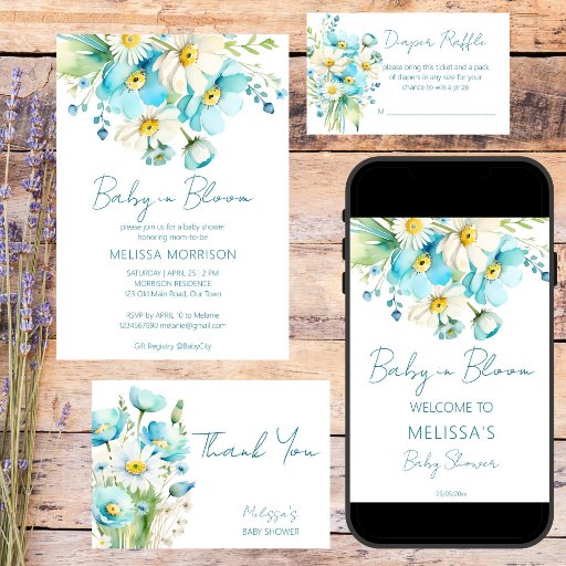 Baby in bloom blue spring summer baby showerDesignt von Ieva Jenciute
