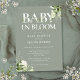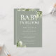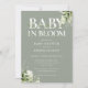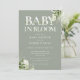 Baby in Blütenbaby Dusche Einladung mit eleganter, hübscher botanischer Blattpflanzentypografie auf einem geschlechtsneutralen, grünen Hintergrund. Entwickelt von Thisisnotme©