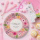 Baby in blutfarbenem Blumenpfirsichblütendusche Pappteller