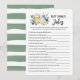 Kaufe diese bearbeitbare Karte und genieße das hochwertige Baby Shower-Witze-Spiel für deine Veranstaltung! Baby Shower, Geschlechtsenthüllungs-Aktivitäten! Unisex-Design in Sage Green Brewery.