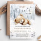 Celebrate your winter baby shower with this Baby It’s Cold Outside Invitation, featuring a watercolor teddy bear, snowy forest background, and soft blue-gray tones. Perfect for cold-weather celebrations, this charming woodland design adds a cozy and elegant touch to your special day. Personalize easily with your own details for a keepsake guests will adore.