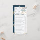 Add frosty fun to your winter baby shower with this elegant "Guess Who Mommy or Daddy?" game card from the Baby It's Cold Outside Navy Gold collection! Featuring a gorgeous navy background with shimmering gold leaves, icy blue berries, and delicate snowflakes, this stylish card includes 18 hilarious predictions (from "Who was ready to have a baby first?" to "Who wants more pictures/videos?"). Guests check ♥ Mommy or Daddy and sign their name at the bottom — a perfect ice-breaker for winter wonderland, holiday, or Christmas-themed showers! Fully customizable: change text, fonts, or colors. Coordinates beautifully with the rest of the Navy Gold Winter Baby Shower suite. Printed on premium cardstock with matching envelopes available. Make your snowy celebration unforgettable!