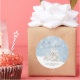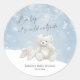 Seal your envelopes or decorate favors with this elegant "Baby, It's Cold Outside" sticker. The design features the charming teddy bear and cozy baby boots in a serene, snowy winter wonderland setting, framed by delicate snowflakes. This sticker adds a beautiful, cohesive, and gender-neutral accent to your baby shower stationery and gifts.