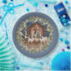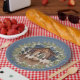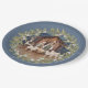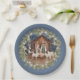 Diese traditionelle Weihnachtsplatte zeigt ein Krippenbild des Jesus-Babys, das in einer Manier mit Maria und Joseph in der Mitte schläft. Die Krippe ist von einem Kranz mit weißen Beeren umgeben. Der Hintergrund hat eine koordinierende blaue Farbe.