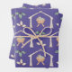 This wrapping paper has a cute Baby Jesus in a rustic manger and some holly leaves for decoration. Dark blue background depicts the night sky.