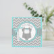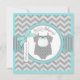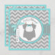 Süßer Polkapunkt-Druckpullover mit Bogen-Krawatte auf Clothesline und Bogen 3D-look und Band für eine Jungenbabyduschen-Einladungskarte. Farben sind Aqua und Grau.