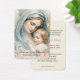 Erinnern Sie sich an Ihr wertvolles Kind im Gebet mit dieser wunderschönen katholischen personalisierten Gedenkkarte der gesegneten Jungfrau Mary, die ein Kind mit rosa Blumenakzenten in ihren Armen hält.