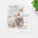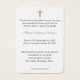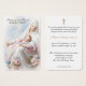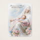 Erinnern Sie sich an Ihr wertvolles Kind im Gebet mit dieser wunderschönen katholischen personalisierten Gedenkkarte der gesegneten Jungfrau Mary, die ein Kind mit rosa und blauen Blumenakzenten in ihren Armen hält.