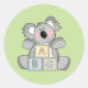 Verwendet diese niedlichen und bezaubernden Aufkleber für Umschlag Aufkleber oder Babyduschfavoriten. Das Design zeichnet sich durch eine niedliche und bezaubernde Animationsgrafik eines Koala-Babybären mit einem Set A B C Blöcke aus.