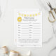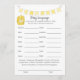 Ein lustiges Spiel für das Party der Gender-Enthüllung ist das Baby-Sprachspiel. Dieses Spiel hat ein gelbes Banner oben und ein Fass Honig. Auf der anderen Seite ist ein Teddybär, der sich auf ein Honigfass stützt und eine Honigbiene mit Vorlagen beobachtet.