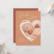 Diese elegante und moderne Designankündigung der vertikalen Foto-Geburtsvorlage ist eine zweiseitige Doppelkarte mit einem herzförmigen Foto Ihres Neugeborenen oder Babys und dem süßen Satz "Baby Liebe" im hübschen Script-Schriftart. Personalisieren Sie diese Fotokarte mit Ihrer persönlichen Nachricht von der Familie (Mutter, Vater, Geschwister, wenn Sie möchten), die auf der Rückseite mit jeder Danksagung oder Satz Zitat von den neuen Eltern personalisiert werden kann. Ein zweites horizontales Foto befindet sich auf der Rückseite. Töne von Terrakotta mutierten Korallen und boho bohemian mutierte Rost.