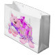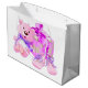 Ein schöner, großer Geschenksack für ein kleines Mädchen, das mit rosa Schuhen, Teddybären und Geschenk ausgestattet ist