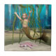 Kleine niedliche Babymädchen auf blauem Fantasy-Hintergrund