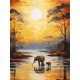 Im sanften Glanz der untergehenden Sonne tauchen ein Elefant und seine Mutter in die ruhige Umgebung. In diesem bezaubernden Ölgemälde ist die Verbindung zwischen Eltern und Kind schön dargestellt. Die Silhouette erzählt eine herzzerwärmende Geschichte von Liebe, Führung und den friedlichen Momenten, die wir in Gesellschaft derer, die wir lieben, schätze.