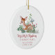 Celebrate the magic of your little one's very first holiday season with this enchanting Baby First Christmas Deer Woodland Photo Ceramic Ornament! This beautiful ceramic ornament captures pure innocence, featuring an adorable baby deer vignette nestled among charming mushrooms and delicate foliage on the front. Your baby's name and birth stats (date, weight, length, time) are elegantly displayed, with "First Christmas" beautifully highlighted in festive calligraphy, creating a truly personalized keepsake.