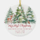 Celebrate the enchantment of your little one's very first holiday season with this magical Baby First Christmas Woodland Deer Owl Photo Ceramic Ornament! This exquisite ornament captures a dreamy winter scene, featuring a whimsical watercolor wonderland painting in the background. In the foreground, an adorable baby deer and a sweet owl gaze at each other, creating a truly heartwarming and serene vignette.
