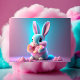 Baby, niedlich, Cartoon rosa sonnige Bonbons Postcard, KI Generation, niedliche Tiere, Kaninchen generativekontinte