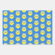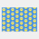 Maßgeschneidertes blaues Packpapier. Zeichn von einer Babyeule. Niedlicher Zeichentrickcharakter Geschenkpackidee für Kinder.