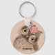 Niedliche Uhu in Aquarellfarbe mit Blumendekoration auf dem Kopf. Optionales Monogramm