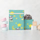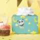 Niedliche Babypanda mit hellgelbem Mond und Sternen auf einem Aqua-Hintergrund. Die Hintergrundfarbe kann geändert werden.