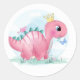 Pink Baby Dinosaurier mit Crown Classic Round Sticker Crafts & Party Supplies > Geschenkartikel > Aufkleber & Etiketten