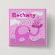 Digitale Kunst eines Babyelefanten, der Blume in seinem Kofferraum im niedlichen Flickenteppich hält, mit einem zart rosa Himmel und flauschig gesteppten Wolken. Niedliche Tasten zum Anpassen verfügbar.