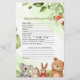 Make your celebration more fun and meaningful with this woodland animals baby shower baby predictions and advice card. This cute design features adorable animals like a fox, bear, bunny, and koala with soft greenery on a light background.