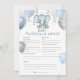 Diese Baby Vorhersage Dusche Spielkarte verfügt über blaue und graue Baby Boy Elefant mit Ballons und Konfetti. Ideal, damit Ihre Gäste mitspielen können.