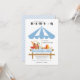 Einzigartige Grilldusche mit Picknicktisch mit einem blauen und weißen Schirm mit einem blauen Gingham-Rücken für eine Jungen-Babydusche. Besuchen Sie unseren Shop, um dieses Design in Rosa, Rot und Grün für Mädchen und neutrale Dusche zu sehen.