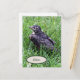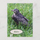 Ein Foto eines Babyrobins, das auf einem Stock im Gras sitzt, nur wenige Minuten nachdem er oder sie aus dem Nest gehauen hat. Dieser Vogel war der erste der Geschwister, der das Nest verließ. Sie können die Postkarte personalisieren, indem Sie das Wort Robin in einen anderen Namen ändern.